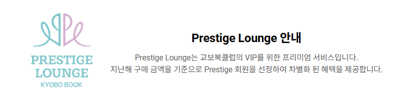 '프레스티지 라운지'는 지난 1년간 교보북클럽 회원 중 200만 원 이상을 구매한 독자에게 제공하는 최상위 멤버십 서비스입니다.