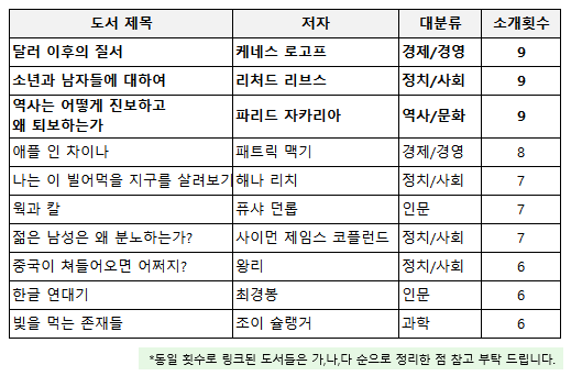 ☘️ 지난 한 달간 신문 지면을 통해 가장 많이 소개된 도서를 소개해 드려요! |