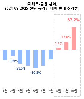 상반기 내내 부진하던 재테크/금융 분야는 8월을 기점으로 플러스로 전환됐고, 10월에는 전년 동기간 대비 무려 37% 이상 성장하며 눈에 띄는 반등을 보여줬기 때문입니다.