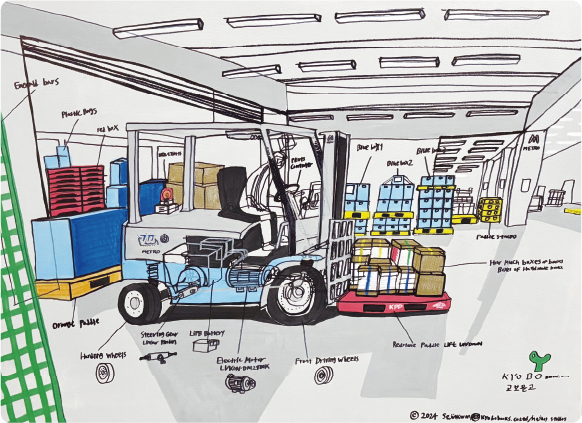 지게차(부품)는 물론이고, 현장의 모습을 세세하게 표현하신 작가님의 관찰력에 정말 놀랐던 작품입니다. |