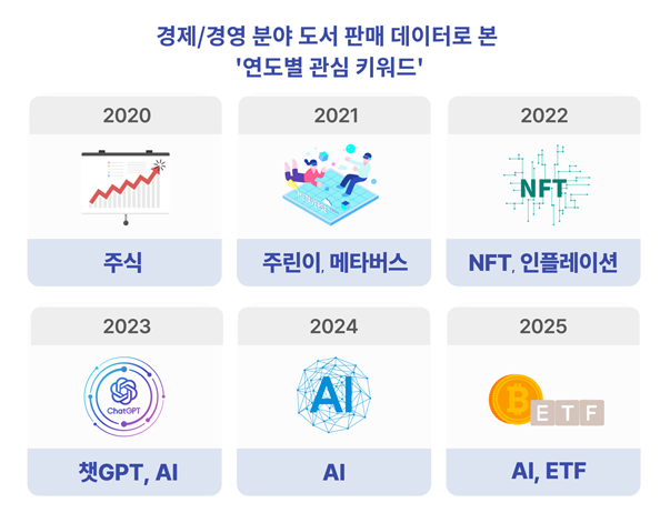 그리고 이 변화는 이미 몇 달 전 서점에서도 감지되었답니다. 경제/경영서를 고르는 손길은 언제나 ‘지금’을 반영하거든요.☺️