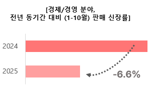 올해 경제/경영 분야 도서 판매는 전년 동기간 대비 약 6% 하락했습니다.