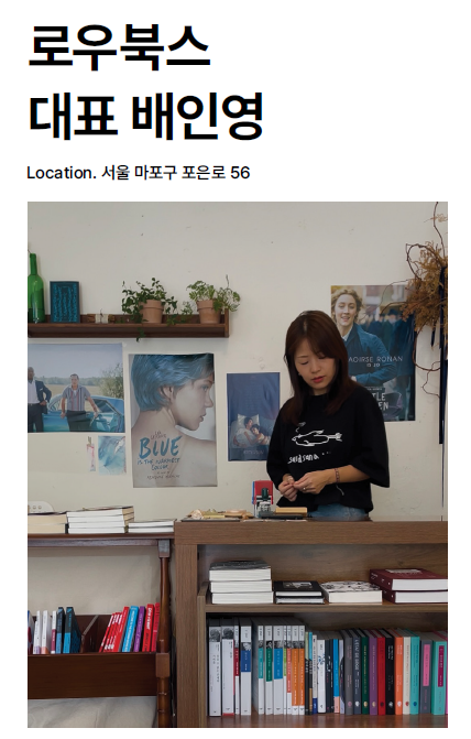 📖 ‘누구나 들어와도 자신에게 맞는 책 한 권을 찾을 수 있는, 문턱 낮은 서점’이라는 로우북스의 뜻이 참 다정한데요. 가장 기억에 남는 손님과의 순간이 있으시다면요? |